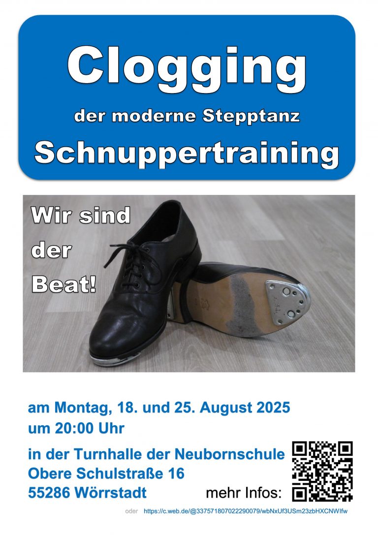 Nur alle paar Jahre ist es möglich, bei einem neuen Clogging-Kurs einzusteigen. Clogging ist ein moderner Stepptanz zu den unterschiedlichsten Musikrichtungen, also sehr abwechslungsreich und Training für Körper und Geist. Und Spaß macht es sowieso, sobald man die doppelten Eisenplättchen unter den Schuhen hat!